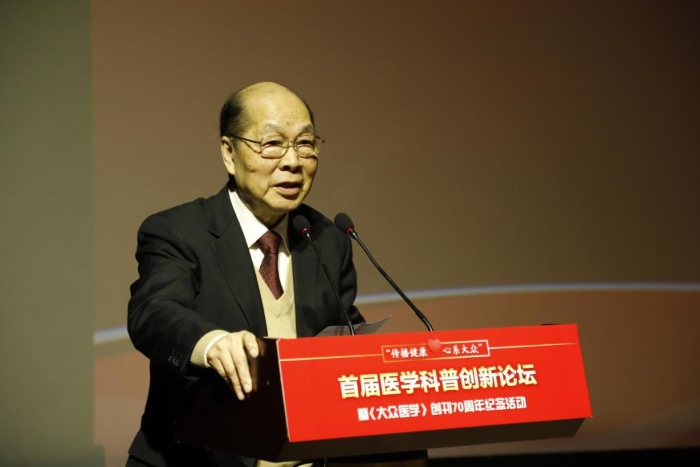 《大眾醫學》專家顧問委員會委員、湯釗猷院士作為作者代表致辭。湯院士指出,我們要樹立大衛生、大健康的觀念,將“以治病為中心”轉變為“以人民健康為中心”??破兆髡吆涂破彰襟w要強化健康中國的宣傳力度,重視創作有中國特色、符合國情的科普內容,增加能夠引起人們思考的科普文章,宣傳科學精神和科學思維,倡導“高、精、尖、新”與“多、快、好、省”并重。他呼吁,更多的一線醫學專家應重視醫學科普工作,積極投入健康中國建設。