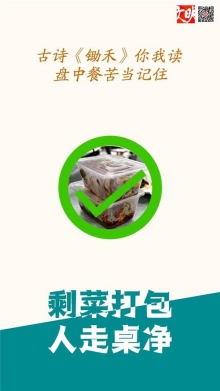 爭做傳統美德的踐行者。宣傳系統各級文明單位要在黨員干部職工中深入開展國情市情、中華美德、優良傳統等教育,在單位醒目位置張貼節約食物、杜絕浪費的宣傳海報、提示牌等。要注重發揮工會、共青團、婦聯等組織職能優勢,面向不同群體開展有針對性的宣傳引導。要引導黨員干部職工帶動督促家庭成員樹立勤儉持家的家風,讓中華傳統美德在家庭里生根、在親情中升華。有單位食堂、餐飲部門的文明單位要大力推行就餐人員按需取餐、勤拿少取、“人走盤光”。要從源頭上根據需要科學定量,建立剩余菜品處理利用機制等,制定“硬措施”,拿出“巧辦法”,時時處處踐行“光盤行動”。